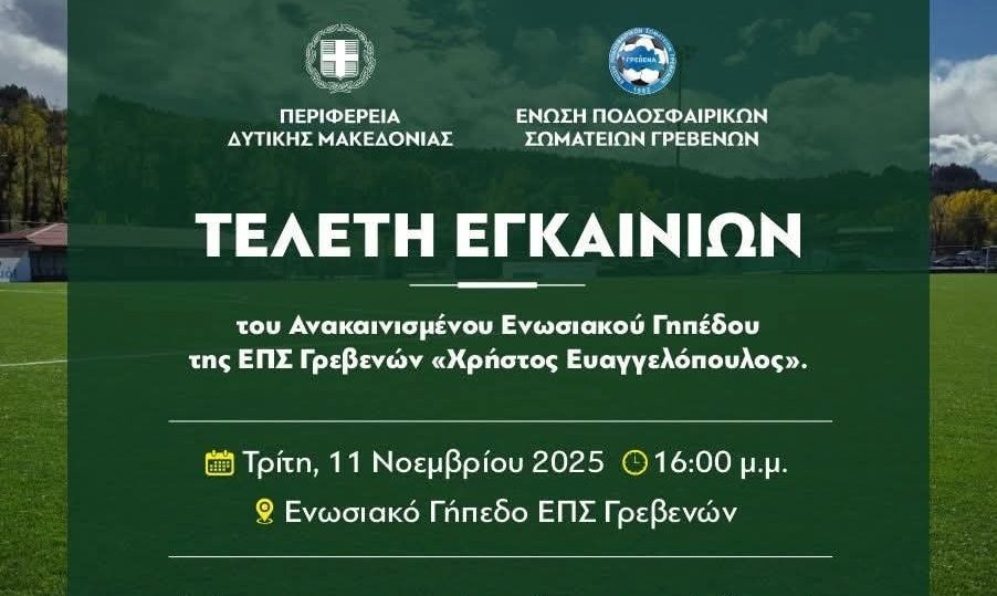 We are pleased to invite you to the inauguration of the renovated Union Stadium (Christos Evangelopoulos) of the Grevena Football Association, on Tuesday, November 11th at 16:00.This is an important moment for local sports and football in our area. The stadium, fully renovated, is